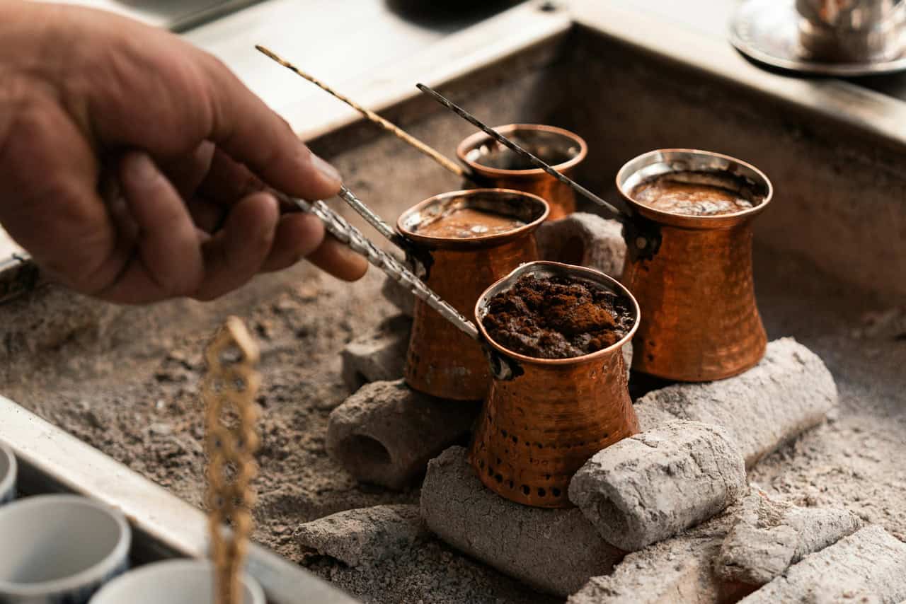 Der türkische Kaffee ist UNESCO-Weltkulturerbe. Fein gemahlene Kaffeebohnen werden mit Wasser und Zucker in der „Cezve“ aufgekocht. Der unfiltrierte Kaffee wird langsam genossen, meist in kleinen Tassen, oft begleitet von einem Glas Wasser und süßem Gebäck. Hier geht es weniger um Technik als um Gemeinschaft, Gespräch und Tradition – Kaffee als soziales Erlebnis.